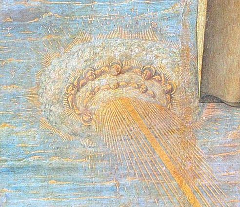Выше картина Бонавентуры Салимбени названная «Прославление таинства Евхаристии», написана в 1600 году. Обратите внимание на устройство похожее на первый советский спутник. Сейчас картина находится в церкви Сан-Лоренцо в Сан-Пьетро, Монтальчино, Италия.