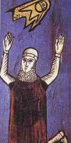 Эти картины из рукописи 12 века Paolo Uccello (1396-1475) «La Tebaide» (painted c.1460-1465). Они описывают осаду замка Сигизбург во Франции, где саксы окружили французов и были готовы взять замок, когда «огненные щиты» появились в небе над церковью. Саксы думали, что французы были защищены этими существами и убежал. Это событие случилось в 776 год и было хорошо документировано.