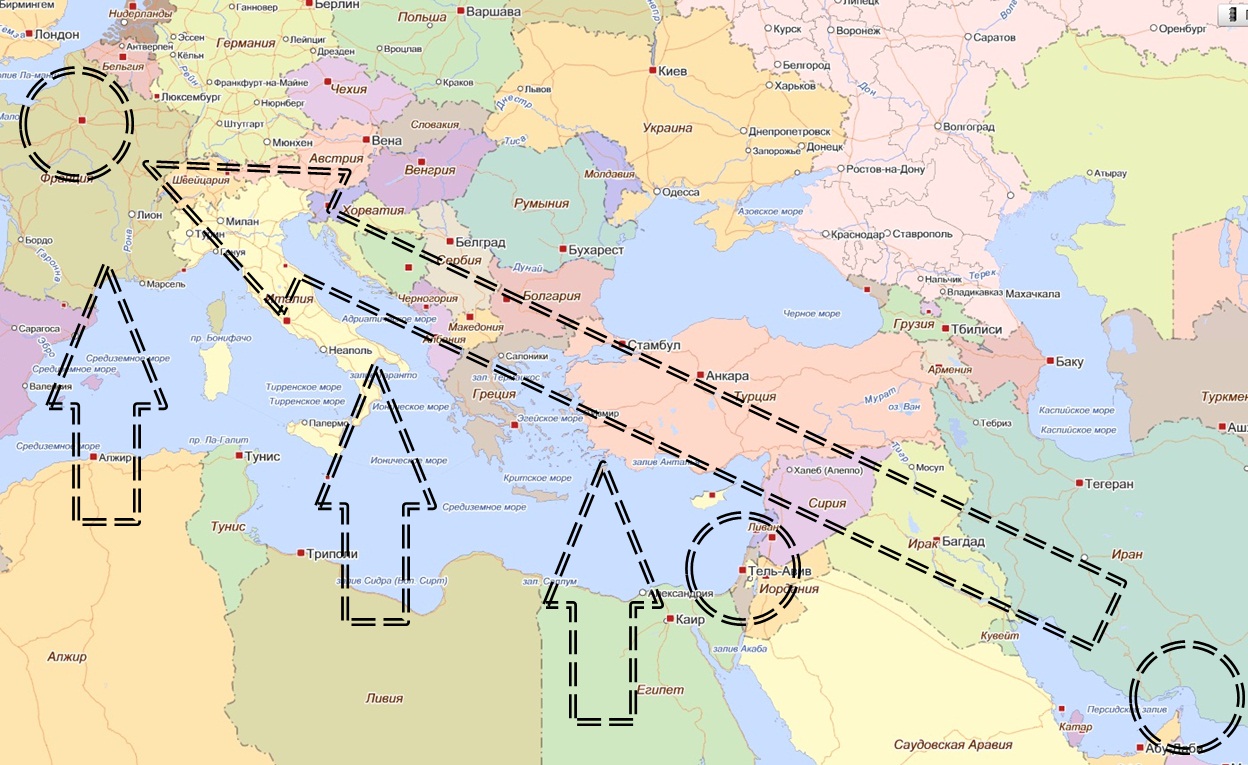 «Арабская весна», начавшись спонтанно 17 декабря 2010 года в Тунисе, очень быстро приобрела управляемый характер. Через 2 месяца беспорядками и протестами были охвачены 20 государств Северной Африки и Ближнего Востока. К концу 2012 года вдоль побережья Средиземного моря при прямом или косвенном участии спецназа США «арабская весна» сформировала «пояс революций». На сегодняшний день Тунис, Ливия, Египет, Сирия, Иордания и Ливан – это зона боевых действий с участием регулярных армий: погромы, протесты, перестрелки, демонстранты, полиция, слезоточивый газ. Всего в «поясе революций» проживает около 127 млн. человек.