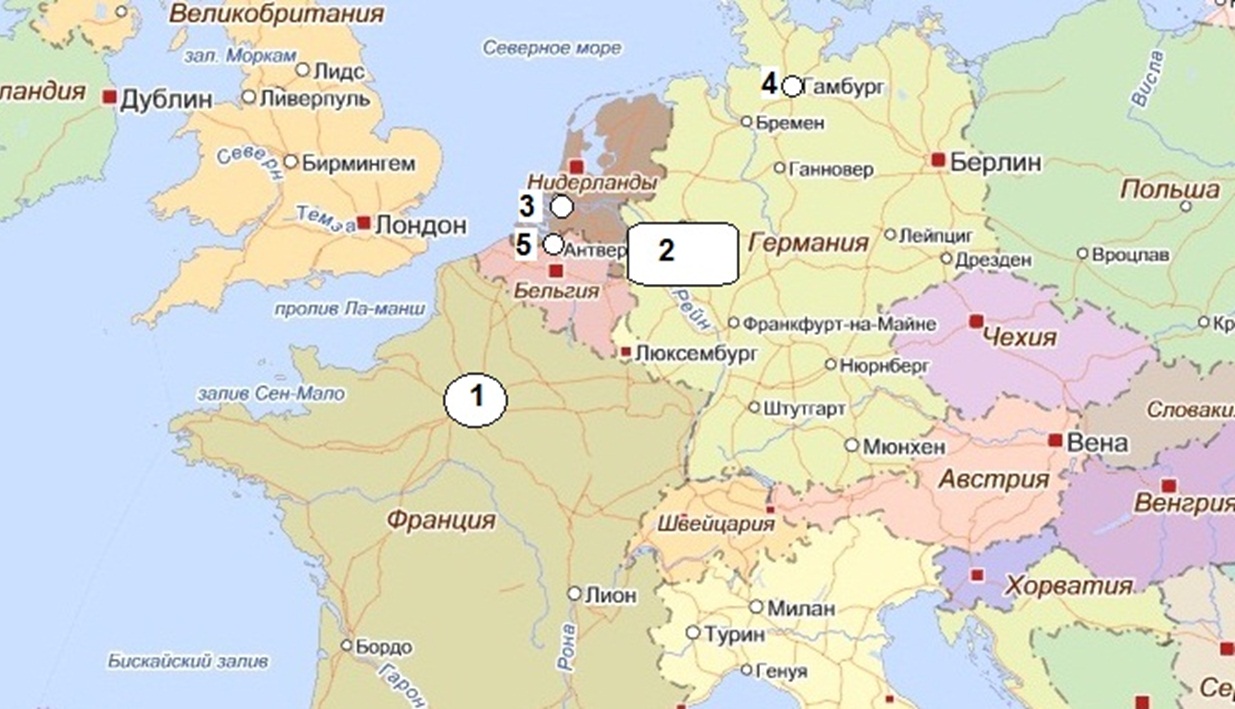 1. Две основные экономические зоны Европы: Иль-де-Франс во Франции и Северный Рейн — Вестфалия в Германии.