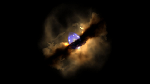 Молодая звезда на расстоянии 4200 световых лет от Земли в форме потолочного светильника Lightstar окружена облаком пыли. Это облако замедляет горячий, ионизированный поток ветра, когда происходят взрывы звезды в космосе, заставляя формировать удлиненную форму перпендикулярно к пыльному кольцу.